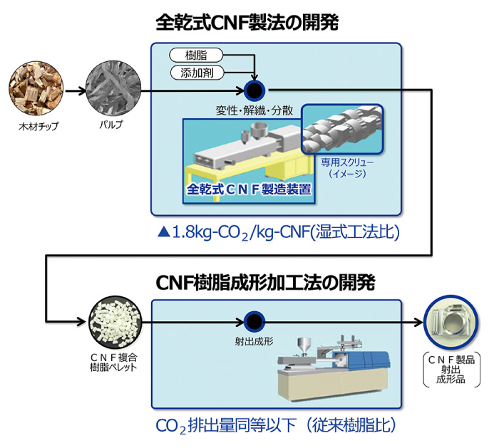 全乾式CNF製法およびCNF樹脂成型加工法の開発を行いました。